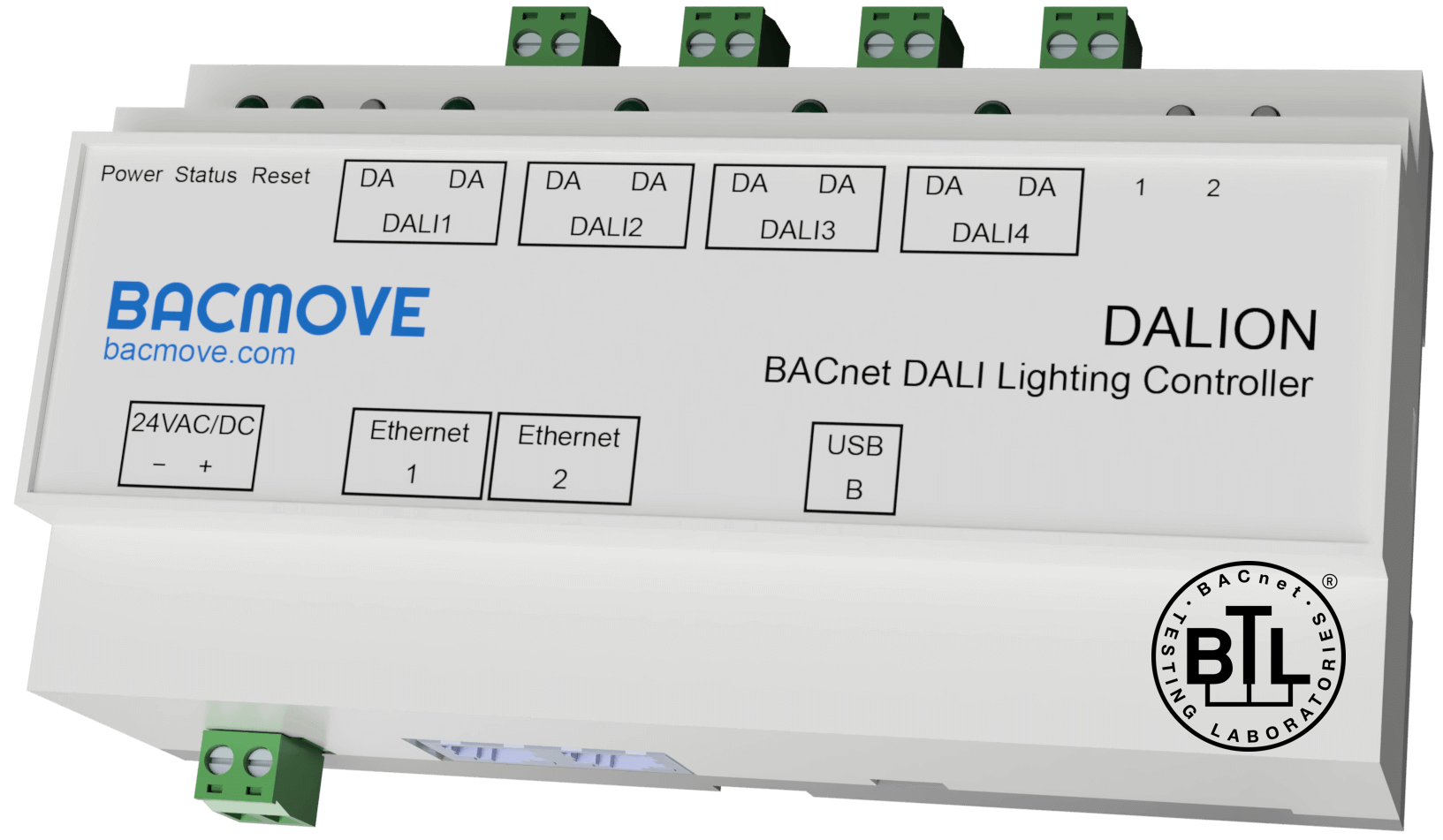 La fonctionnalité de passerelle permet une communication bidirectionnelle entre les réseaux du protocole DALI (Digital Adressable Lightning Interface) et les systèmes BACnet. Le contrôleur DALION intègre plusieurs fonctionnalités qui facilitent l’installation de l’éclairage DALI sur le réseau BACnet.
